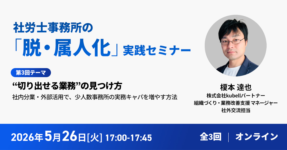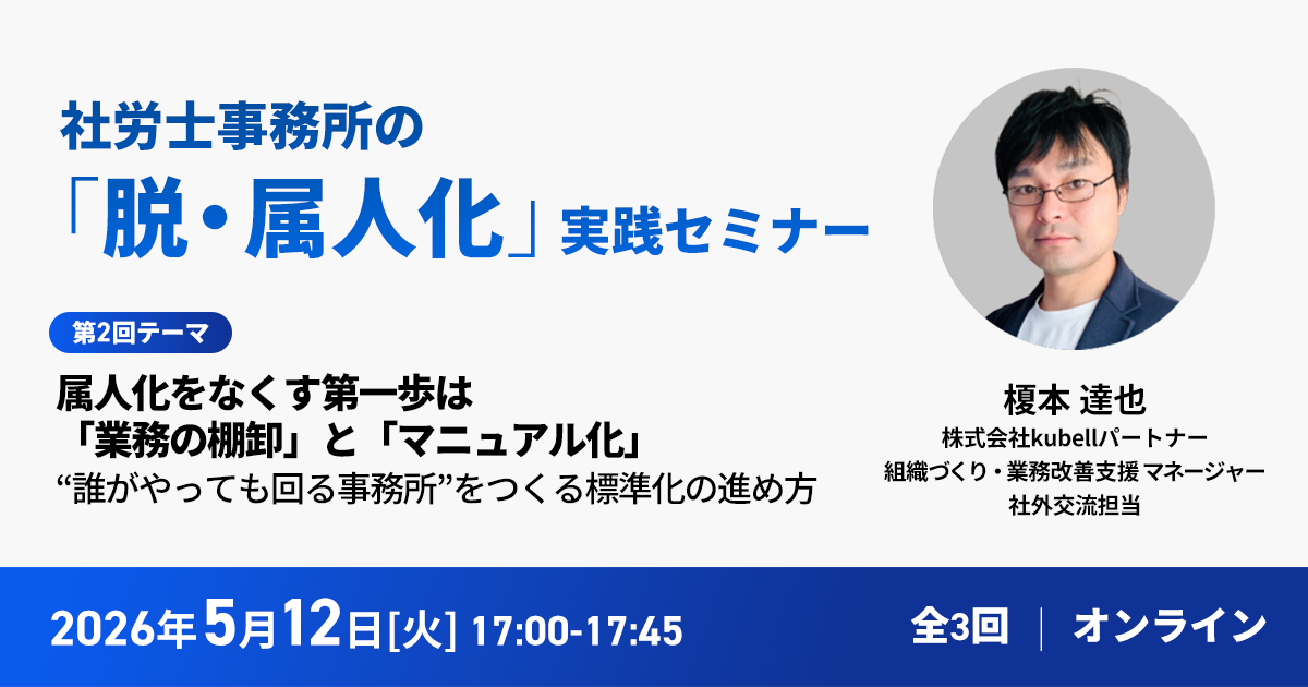 【社労士事務所の「脱・属人化」実践セミナー(1回目/全3回)】 “所長しか回せない事務所”から卒業する。 属人化を前提にした担当制組織から、再現性のあるプロセス分業組織へ