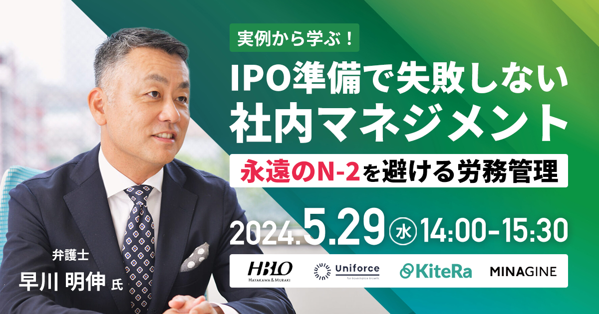 実例から学ぶ!IPO準備で失敗しない社内マネジメント ~永遠のN-2を避ける労務管理~